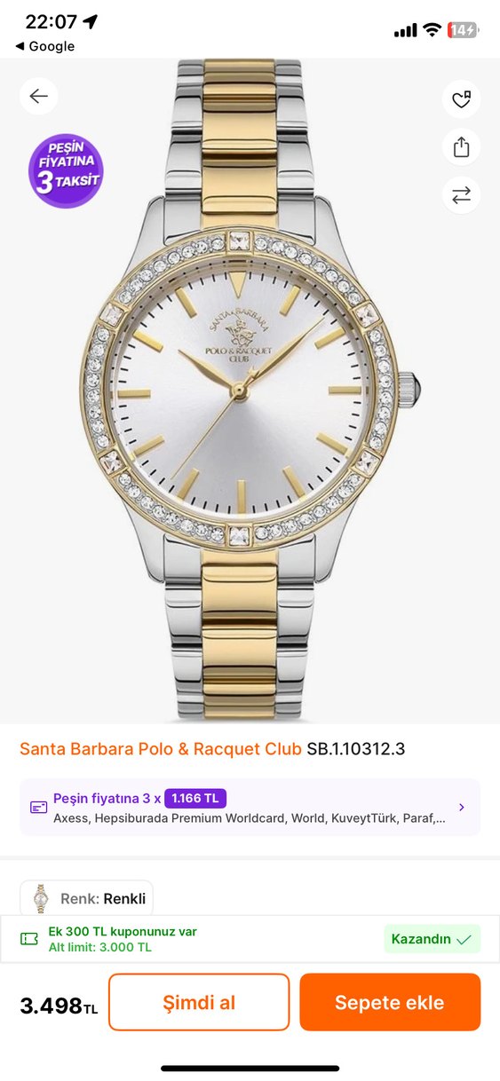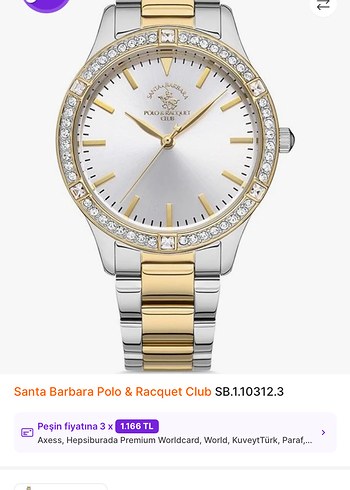 Santa Barbara Polo & Racquet Club kadın saati, parlak altın ve gümüş zincir detaylı bilezik ve kristal taşlı çerçeve ile modern klasik şıklığı yansıtıyor. ⌚1 defa kullandım o da üzerimde takı takmaya sevmediğim için satıyorum,pili durdu değişecek sadece