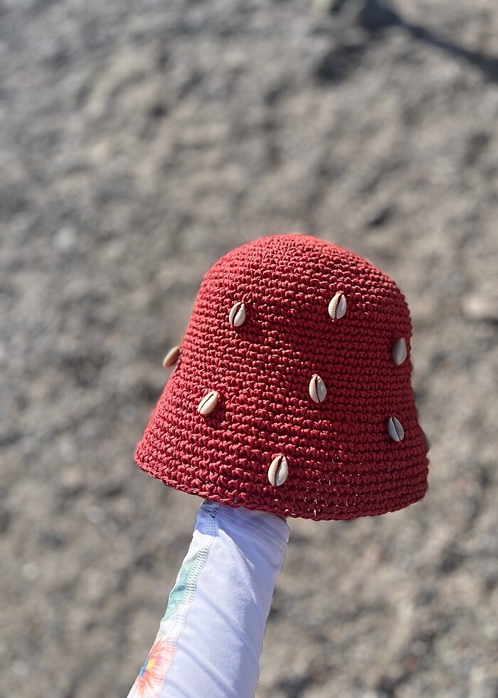 Deniz kabuğu detaylı el yapımı kağıt ip şapka