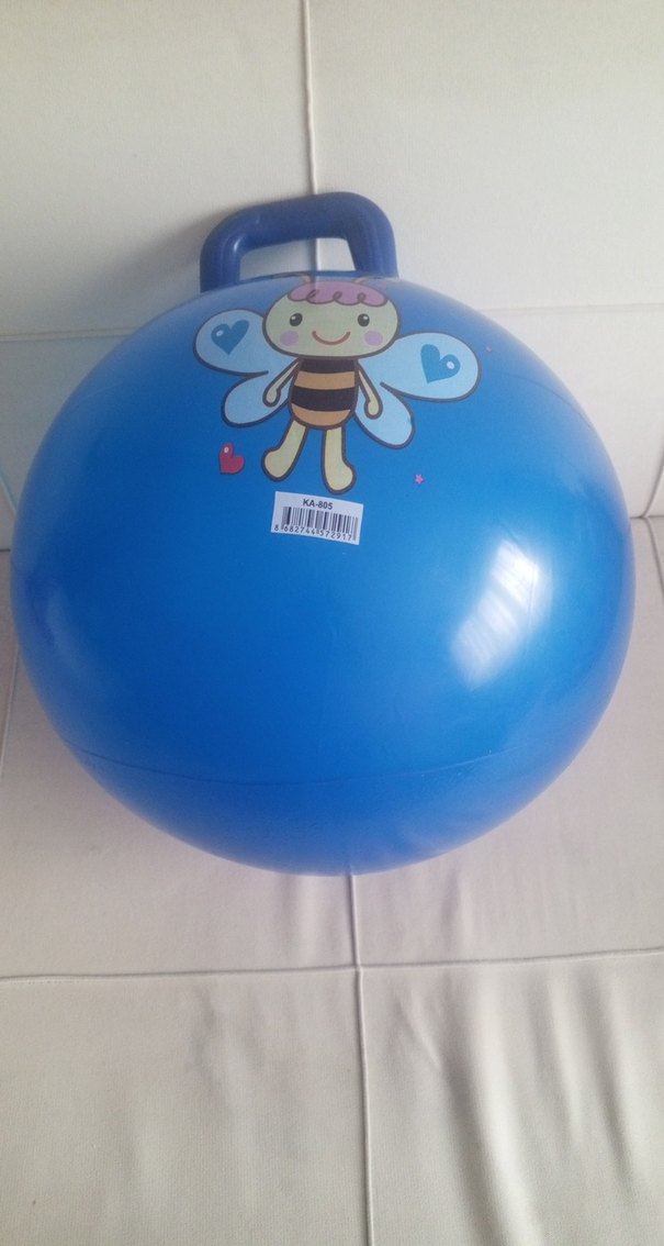 Saplı, üzerinde sevimli arı figürü bulunan renkli mavi zıp zıp top.