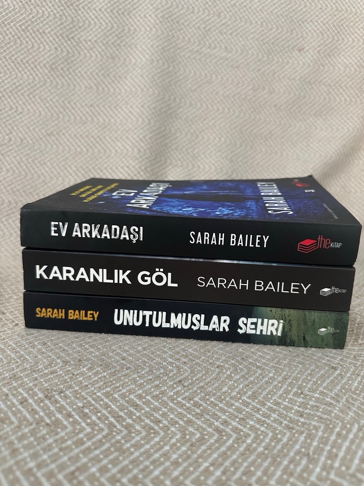 Sarah Bailey'nin 'Ev Arkadaşı,' 'Karanlık Göl' ve 'Unutulmuşlar Şehri' kitaplarından oluşan 3 kitaplık set. Ürünler sıfırdır yurtdışına taşındığım için elimden çıkarmak zorundayım kitaplarımı okunmamıştır 600 TL’ye aldım şu anki fiyatları her üçü 1000 TL