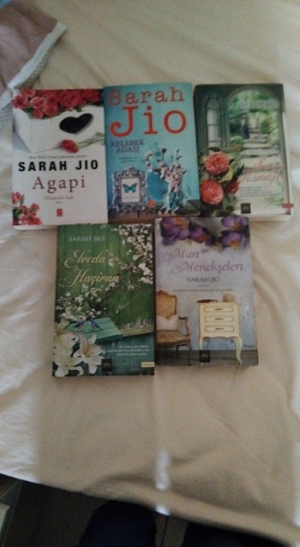 Sarah Jio'nun Agapi, Elveda Hayırsever ve diğer romanlarından oluşan 5 kitaplık set. Çiçek ve vintage temalı kapak tasarımları bulunur.