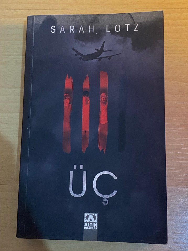 Sarah Lotz'un "Üç" adlı romanı, uçak ve üç kırmızı şerit içinde yüzler içeren koyu kapak tasarımıyla Altın Kitaplar tarafından yayımlanmıştır.