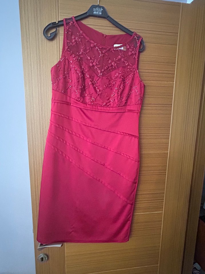 Şarap rengi, kolsuz, işlemeli, drapeli saten abiye elbise . 38-40 giyebilir.