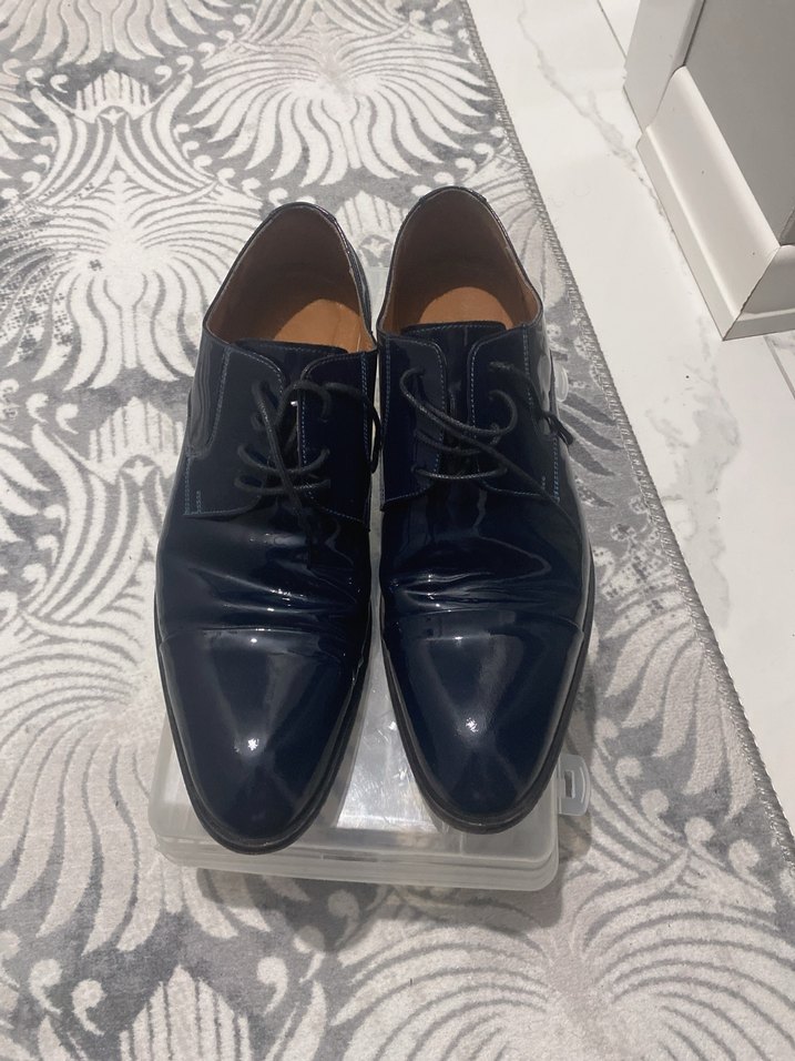 Düğünde 1 kez kullanıldı 42 numara Lacivert Hakiki deri ayakkabı sorunsuz tertemiz plastik ayakkabı kutusu ile sağlam bi şekilde patpatlayıp yollayacağım