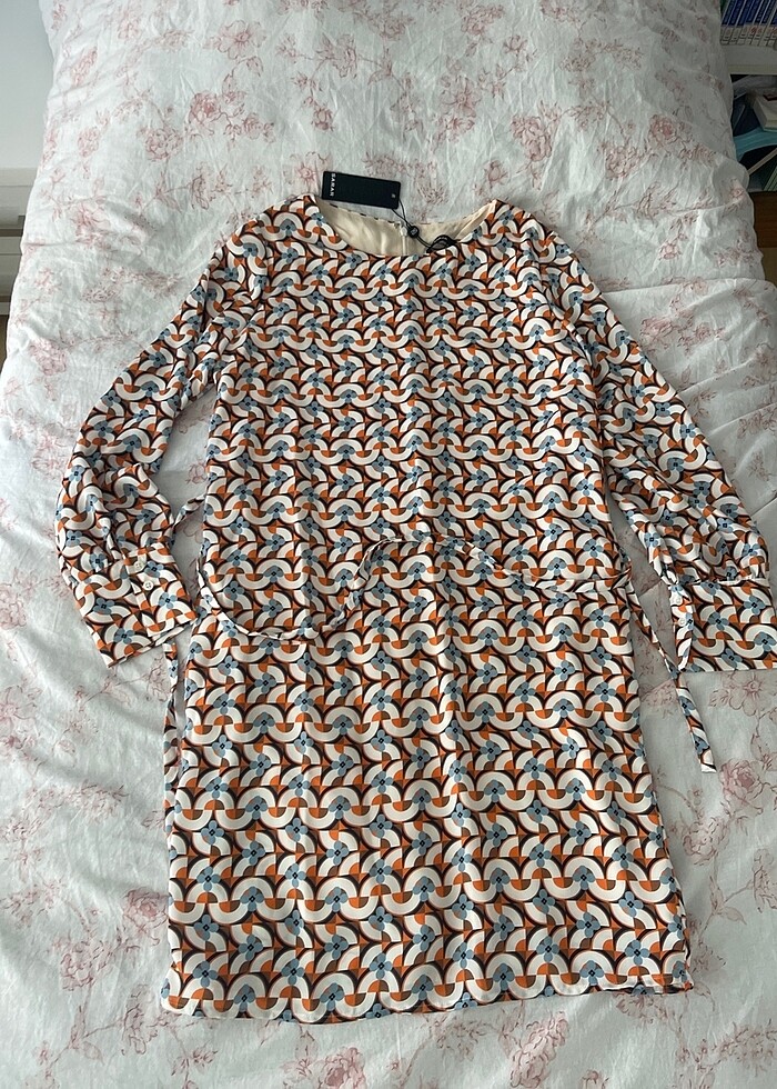 Çok şık desenli orjinal sarar uzun kollu elbise. Yaz kış fark etmez şık olduğu için ofis ortamı, nişan vb yerlerde de tercih edilebilir. Belinde ip detayı var