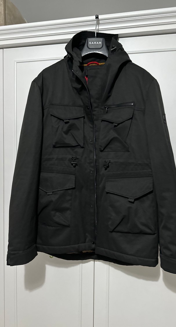 Sarar Erkek Siyah Midi Sokak Tarzı Kemerli Mont