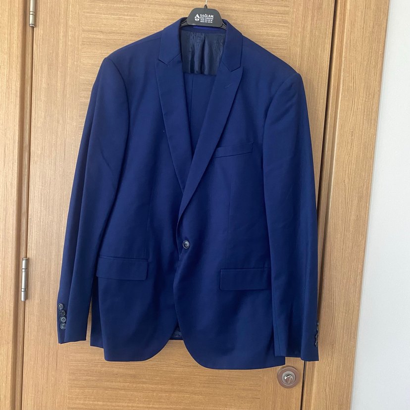 Ürün bir kaç kez giyildi, pantolon ve ceket olmak üzere iki parçadan oluşmaktadır. Fotoğraflarda göründüğü gibidir herhangi bir deformasyonu yoktur. beden ölçüleri ve etiket bilgileri fotoğraflarda görünmektedir ürün kuru temizlemeden sonra satışa sunulmuştur temizdir. Standart ölçülerde olduğu için 6 Drop olarak hesaplanmıştır.İade kabul edemediğim için lütfen sormak istediğiniz her şeyi sorduktan sonra satın alınız. Lacivert renkli, düğmeli ön kısmı ve kesimli yakasıyla modern klasik tarzda erkek takım elbisesi. Uzun kollu, ofis kullanımı için uygun regular fit.