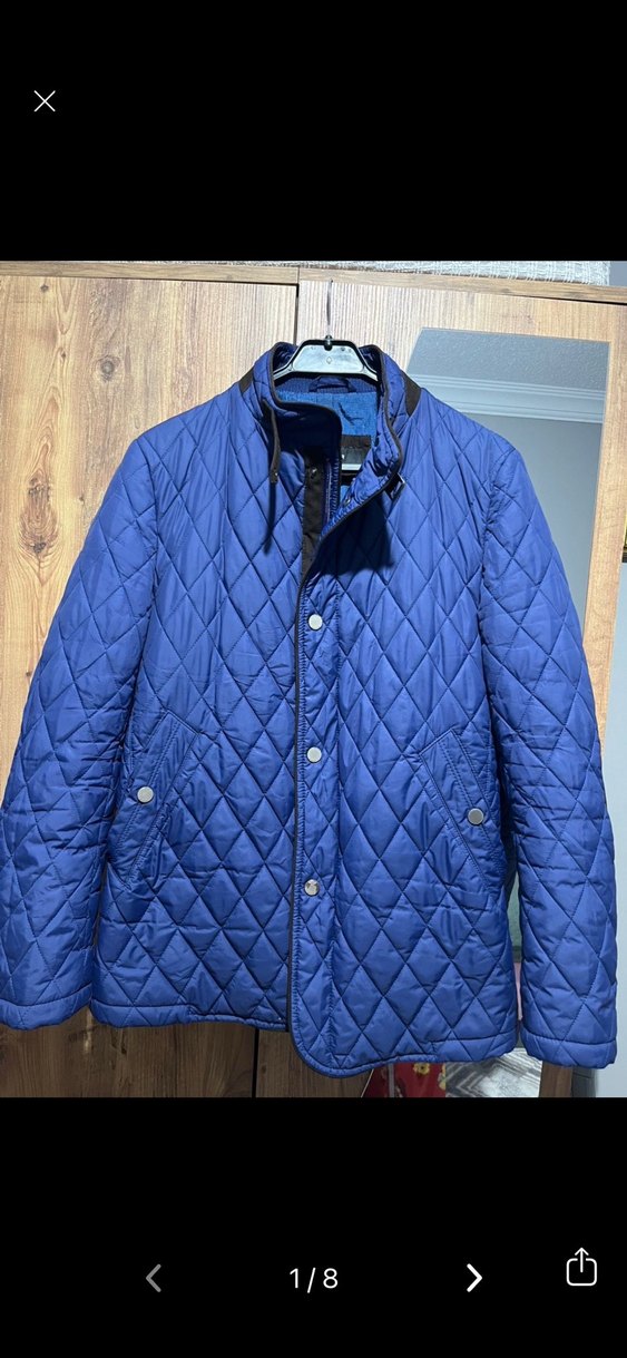 Düğmeli ön ve kesik yaka detaylı, parlak mavi renkte erkek mont. Rahat kesim, uzun kollu ve kapitone sentetik kumaştan midi boyda, günlük kullanıma uygun. S- m beden. Ölçüleri fotolarda eklidir. Ölçülerini dikkate alınız. Son fotoda belirttiğim minicik bir defosu var belli olmuyor bile. Alt kısımda. Bu yüzden iade kabul etmiyorum fiyatını uygun tutuyorum.
