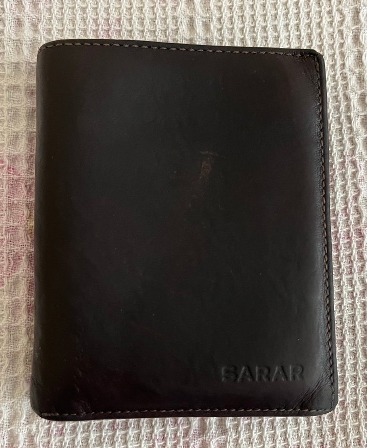 SARAR marka koyu kahve deri erkek cüzdan, düz yüzeyi ve ince işçiliğiyle klasik bir karşı kültür tarzı sunar.