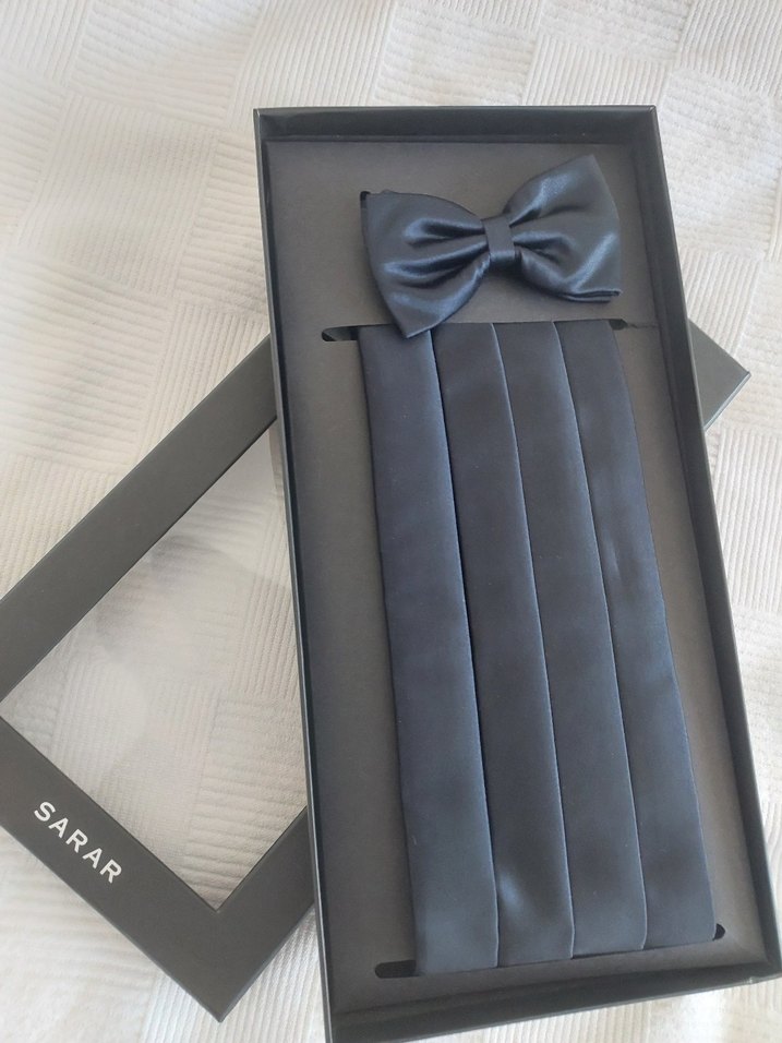 SarAR markalı parlament renkte, desen içermeyen erkek papyon ve kuşak seti, klasik tarzlar için uygun.