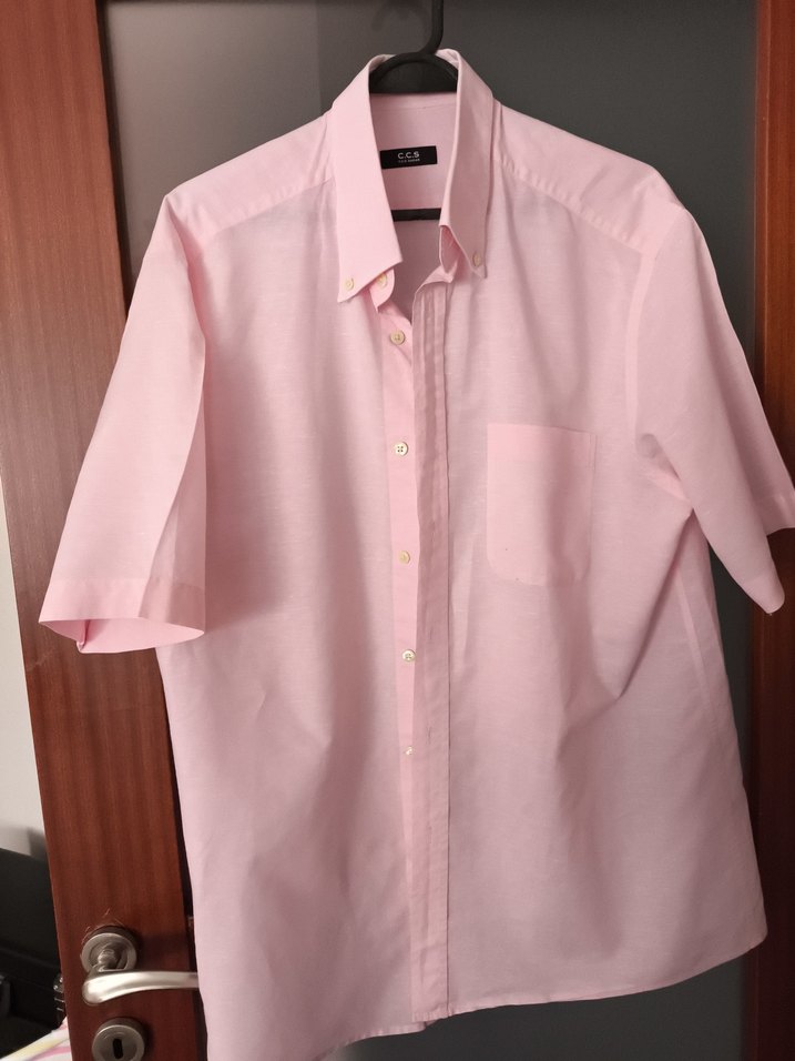 Kısa kollu, düğmeli, yakalı bu erkek gömlek regular kesim ve normal boyda. Sarar,Ccs sarar erkek gömlek,cep kısmında toplu igne bası kadar iki leke var fotoda mevcut iade alniyorum 42 beden L,XL uyumlu iki kol arasi 60 cm boy 82 cm