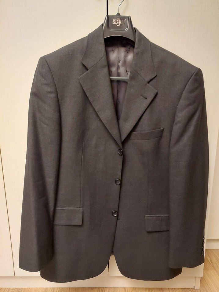 Bu erkek takım elbise ceketi, düğmeli ön ve keskin yakalıdır. Uzun kollu, normal uzunlukta ve klasik gri renkte olup ofis kullanımı için uygundur. ️etiketlerinde beden yazmadığı için ölcülerini fotoğraflarda gösterdim kol boyu 62 cm dir, hiçbir kusuru yoktur, tertemizdir