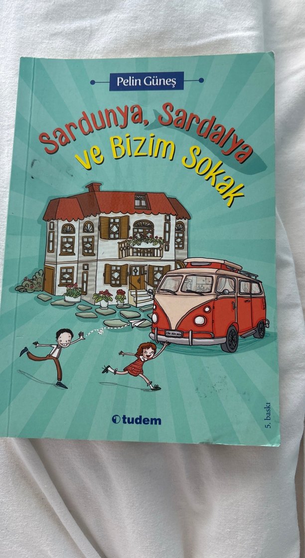 Pelin Güneş'in "Sardunya, Sardalya ve Bizim Sokak" kitabı, çocukların ev ve kırmızı bir minibüs etrafında oynadığı nostaljik bir sokak sahnesini anlatıyor.