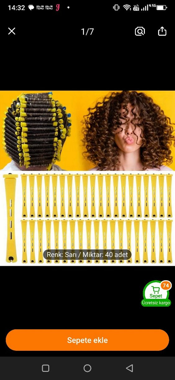 Sarı renkte 40 adet saç perm tokası seti, kıvırcık saç şekillendirmek için kullanılır. Hafif ve kullanımı kolaydır. Sıfır paketinde