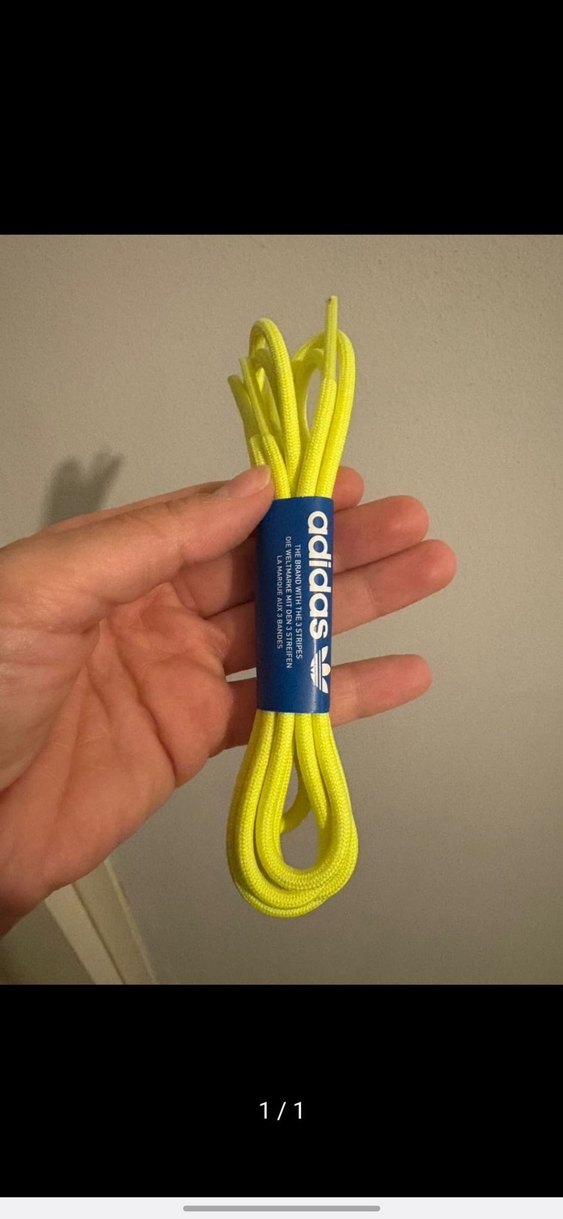 Sokak giyimi ve athleisure tarzları için tasarlanmış parlak sarı Adidas bağcıklar. Erkek ayakkabılarına renkli bir dokunuş katıyor.