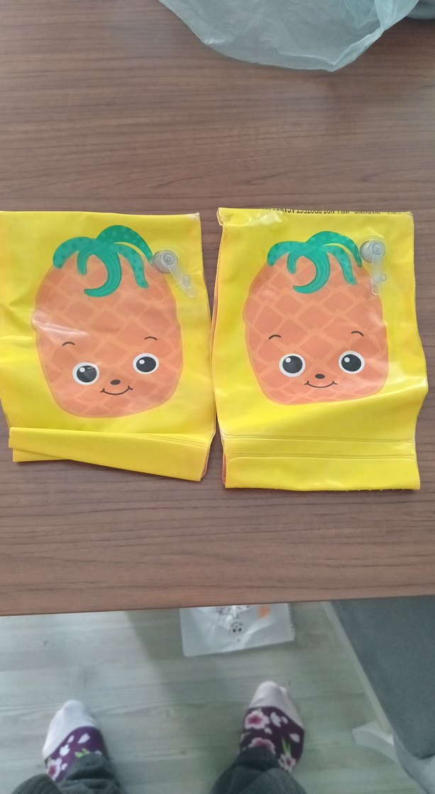 Sarı renkli, ananas desenli çocuk kollukları, plaj ve havuzda kullanım için uygundur.