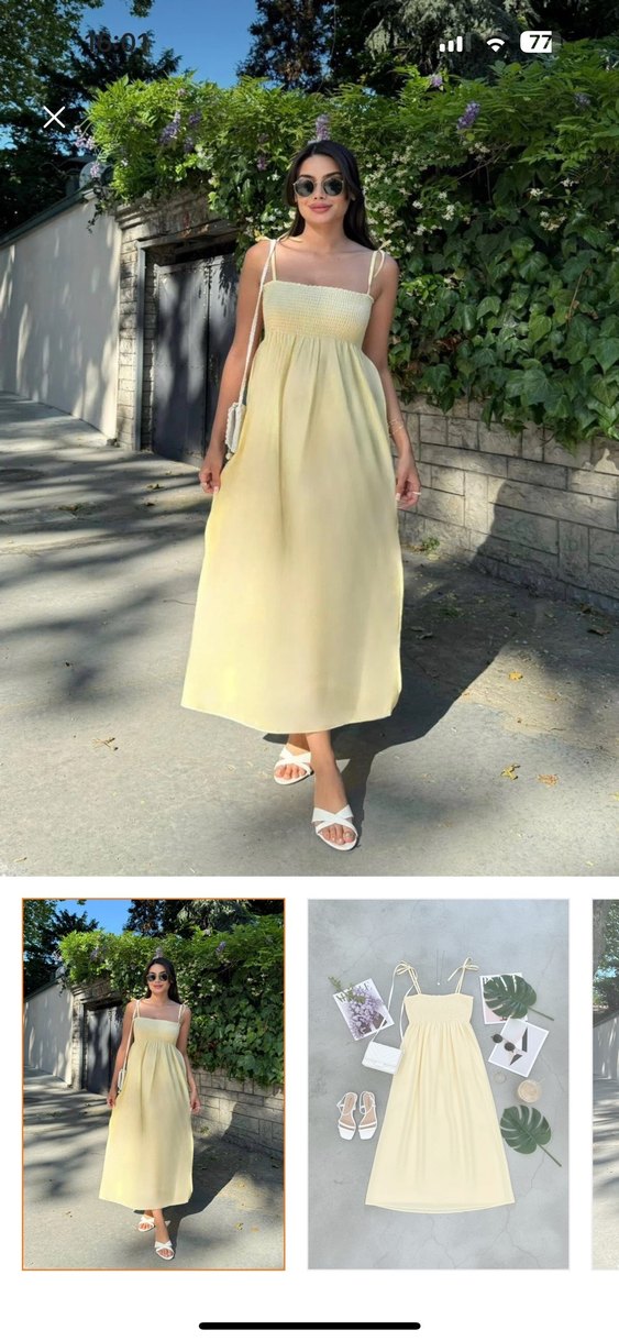 Görsellerden renkle daha çok uyuşan benim askıyla eklediğim fotoğraftakidir. 1 kez giyildi 162 boyum var, bileğime kadar gelmektedir. Ancak kilo durumunuz uzunluğu etkileyebilir. Vücut hatlarınız daha inceyse boyu daha uzun gelebilir veya vücut hatlarınız daha etine dolgunsa boyu daha kısa gelebilir.