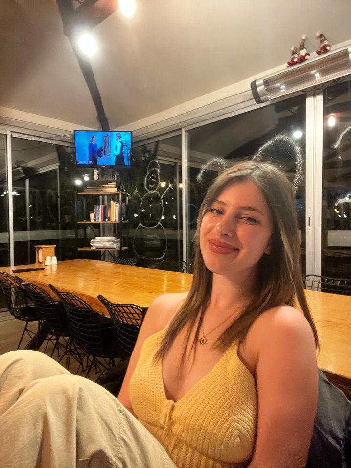 Hafif sarı renkte, bağcıklı ve bağlama desenli rahat, karşı kültür tarzında midi uzunlukta bralet. Yumuşak dokulu.