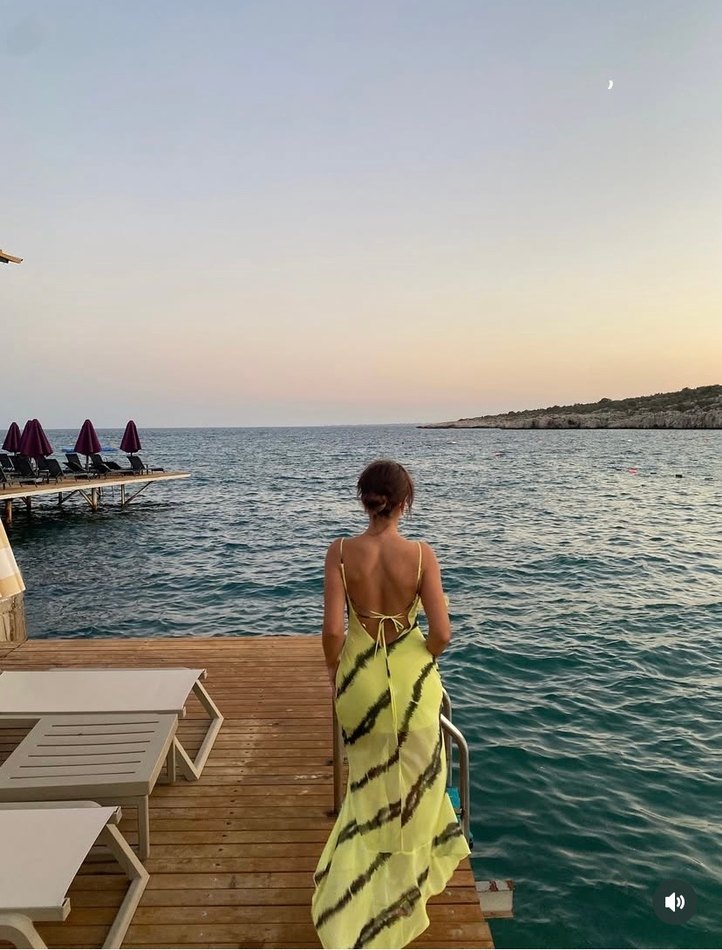 Sarı Bağcıklı Uzun Bohem Plaj Elbisesi