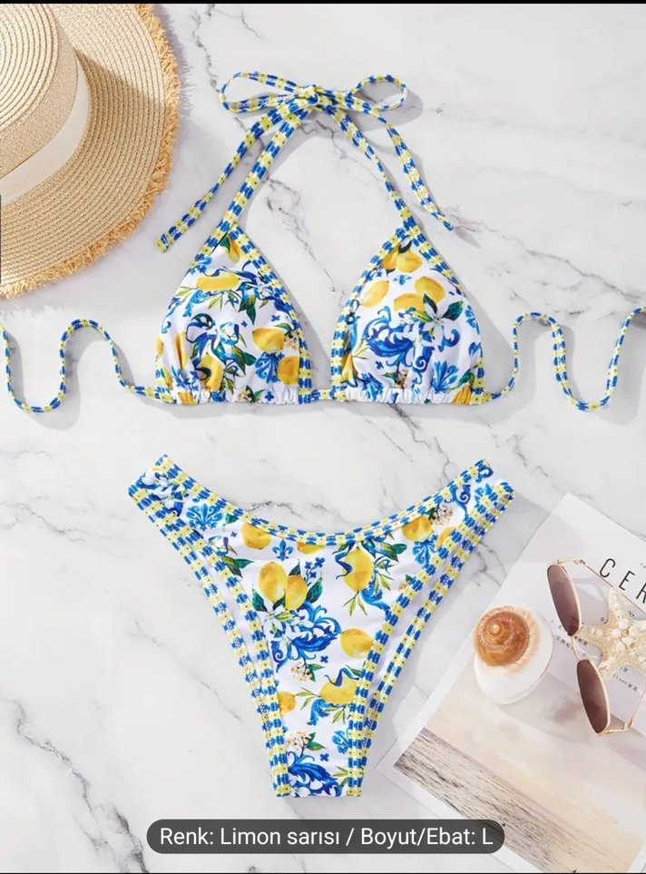 Bağlamalı, sarı tie-dye bikini takımı, bohem tarzda, plaj için uygun. Boyut L. ️hiç kullanılmadı