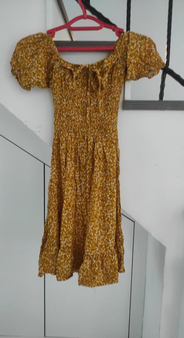 Sarı alt tonlu minik çiçek desenli tiril tiril yazlık elbise. Zarif bir giy çık elbisesi:)