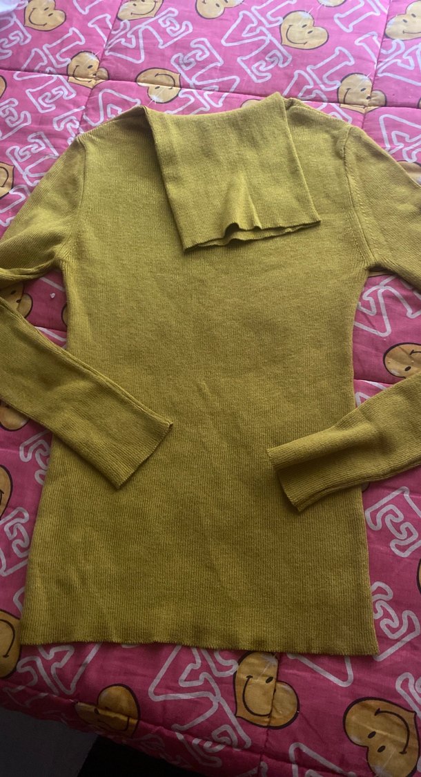 Sarı balıkçı yaka, uzun kollu, yünlü, ince örgü yapısında, vücuda oturan kadın kazak. Günlük kullanıma uygun rahat ve şık.