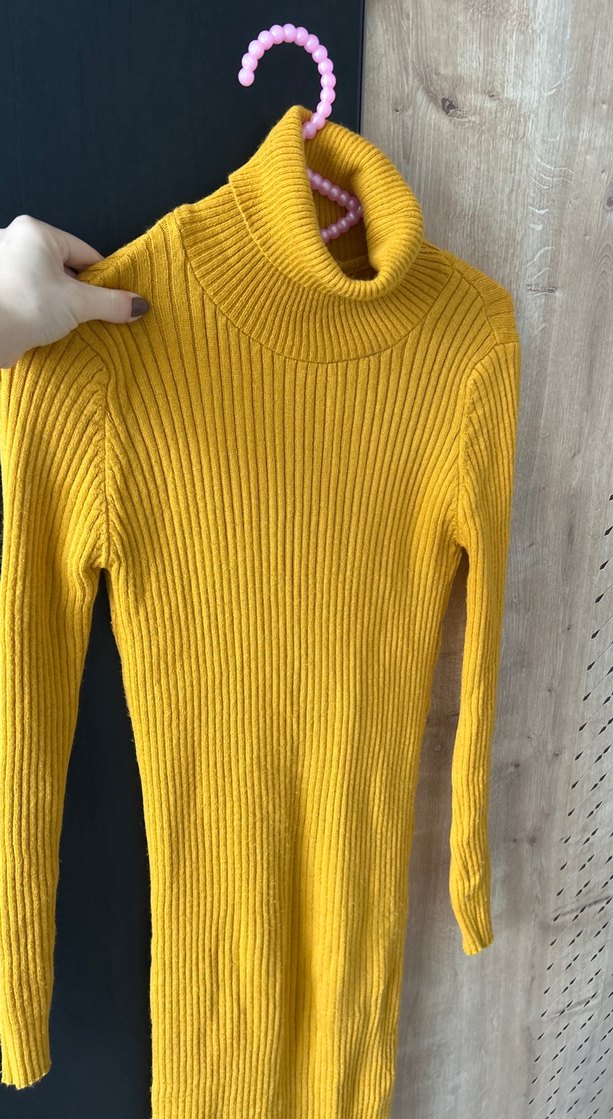 Fitted kesim, sarı renkli balıkçı yaka ve uzun kollu örme triko kadın kazak. Günlük kullanıma uygun, rahat ve şık bir parça.