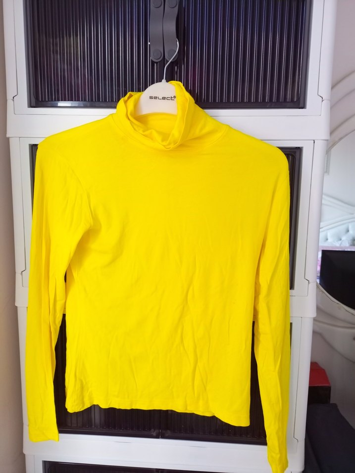 Sarı balıkçı yaka, uzun kollu kadın bady Yumuşak ve sıcak kumaştan, rahat kesim ve canlı renkte, günlük kullanım için uygun. Athleisure ve sokak modasına uygundur. %95Viascose%5 Elasten Boy 52cm Göğüs 80cm s beden. küçük sabun lekesi var.