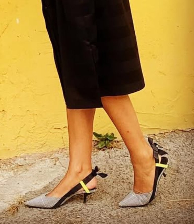Sarı Bantlı Gri Yılan Desenli Stiletto