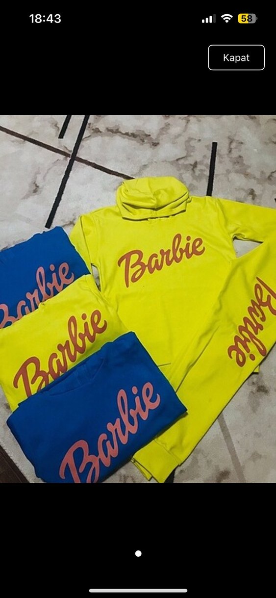 Sarı Barbie Baskılı Kapüşonlu Kız Eşofmanı - Görsel 1