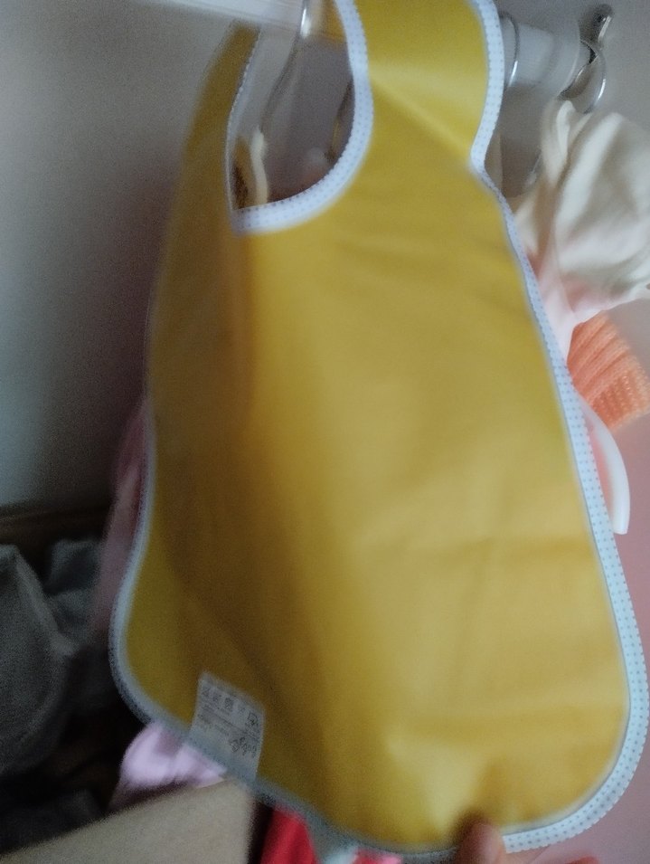 Renkli sarı baskılı bebek önlüğü, yumuşak ve kolay temizlenebilir kumaştan yapılmıştır. Beslenme sırasında bebeğin kıyafetlerini korur.