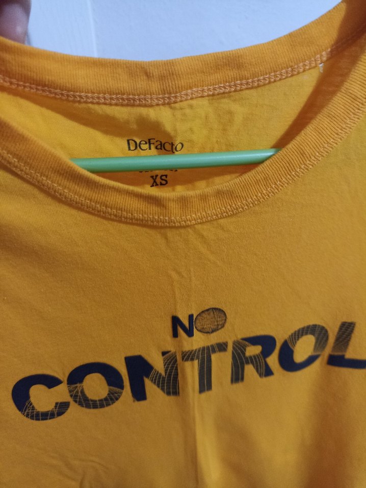 Pamuk kumaştan, kısa kollu ve bisiklet yaka, baskılı sarı DeFacto tişörtü Düğmeli detaylı, günlük kullanıma uygun rahat kesim.