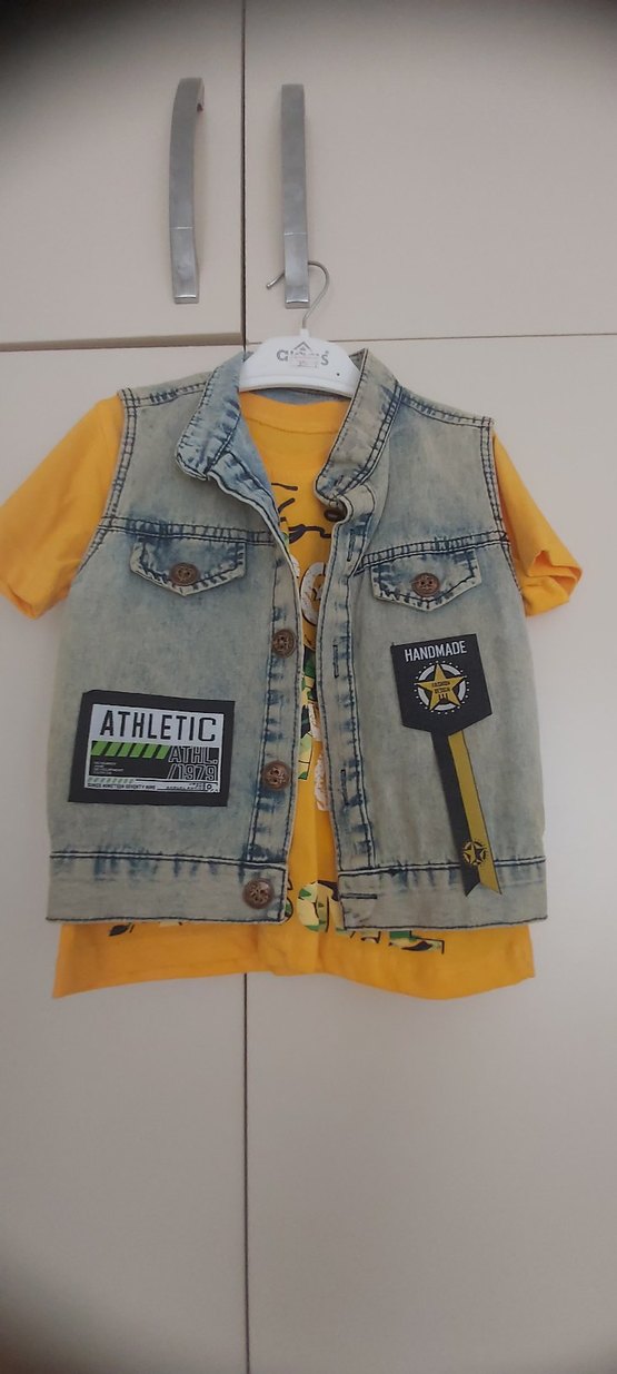Sarı Baskılı Denim Yelek sıfır
