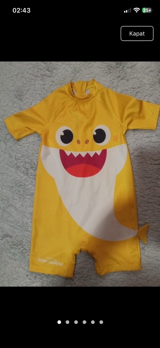 Kısa kollu, sarı ve renkli baskılı köpekbalığı desenli erkek cocuk mayo. Yumuşak kumaşı ile rahat kullanım sağlar. LCW ürünü etiketi kesik 5 yaş