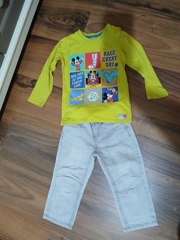Sarı renkli, uzun kollu, baskılı ve düğmeli erkek bebek üstü, açık renk pantolon ile tamamlanmıştır. Üstte 'RACE EVERY DAY' yazısı bulunur. 2/3 yaş