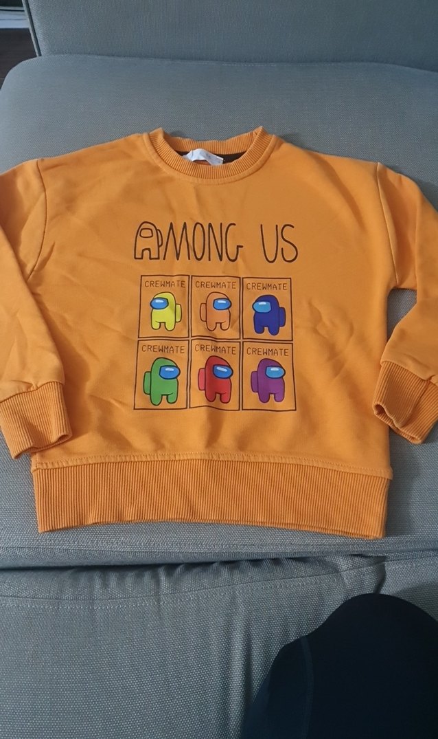 Yuvarlak yakalı, uzun kollu ve bol kesim erkek çocuk sweatshirtü. Yumuşak ve sıcak kumaştan üretilmiş, Among Us temalı renkli baskıya sahip. Düğme detayları bulunur.