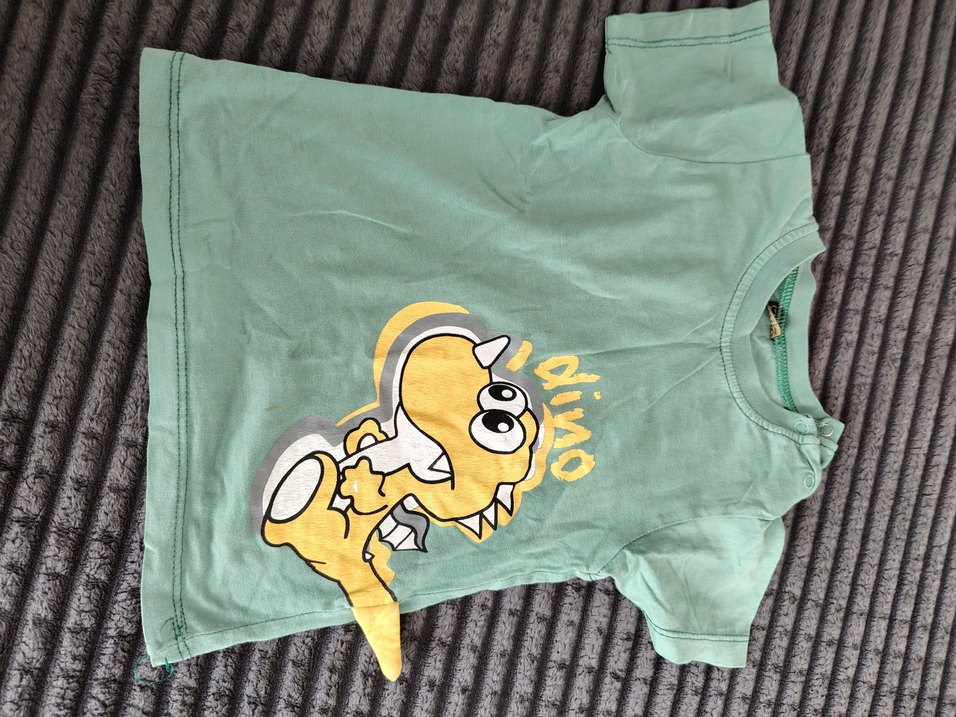 Pastel sarı renkli, baskılı dinazor desenli, kısa kollu, yuvarlak yaka, fermuarlı, erkek çocuk tişörtü. Sokak stili ve rock punk havası taşıyor.