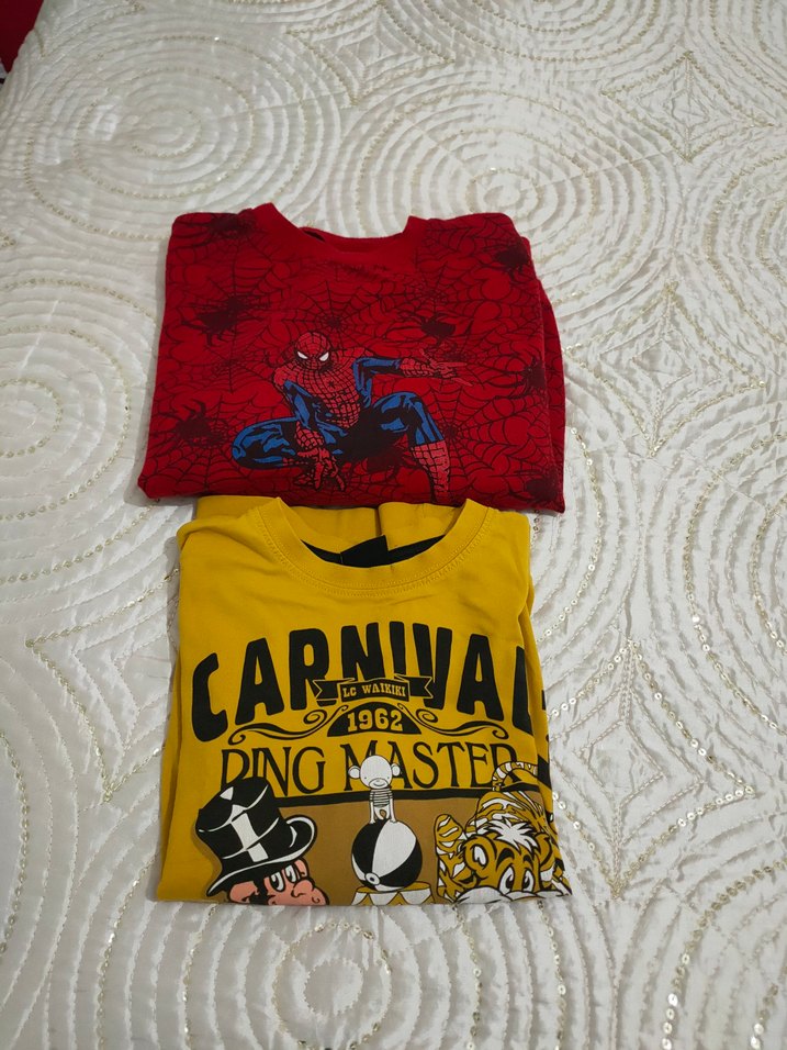 Sarı renkli, uzun kollu ve çizgili kollara sahip erkek sweatshirt. Baskılı renkli karnaval figürleri ve örme detayları içerir. Üzerinde 1962 yazısı bulunur. ikili fiyat