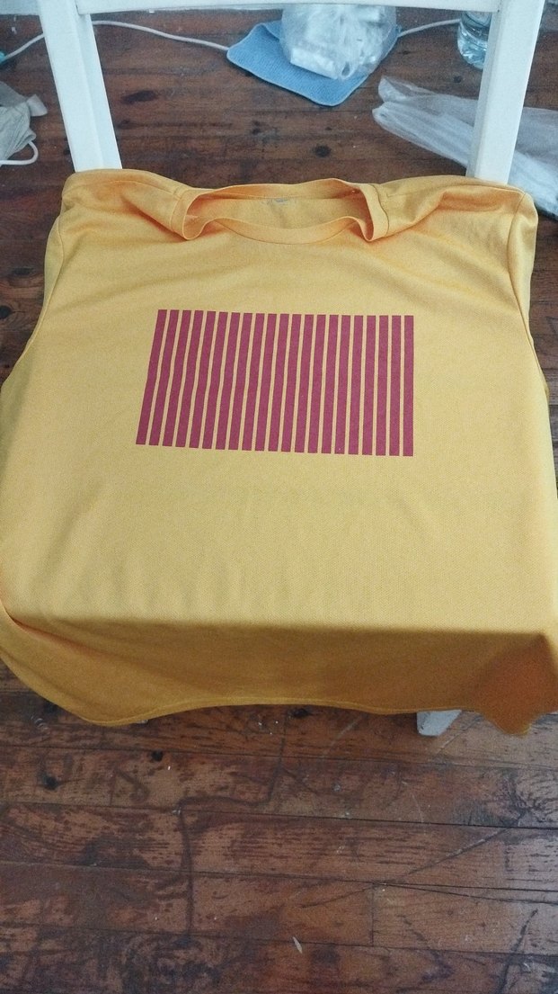Sarı renkli, kırmızı dikey çizgili baskılı hamile tişörtü. Bisiklet yaka ve kısa kollu. Sentetik kumaştan, bol kesim, günlük kullanıma uygun.