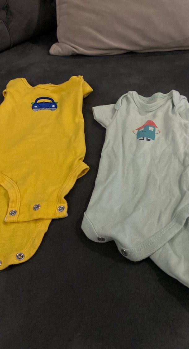 Pamuklu, kısa kollu, bisiklet yaka bebek body. Sarı pastel renkte, küçük baskılı araba motifi ve çıtçıtlı kapama bulunur.