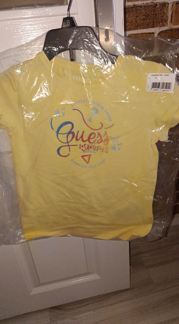 Sarı renkli, baskılı ve kısa kollu, dar kesim kadın tişörtü. 'Guess Los Angeles' yazılı baskısı ile gündelik ve parti stiline uygundur. 8 yaş için uygundur