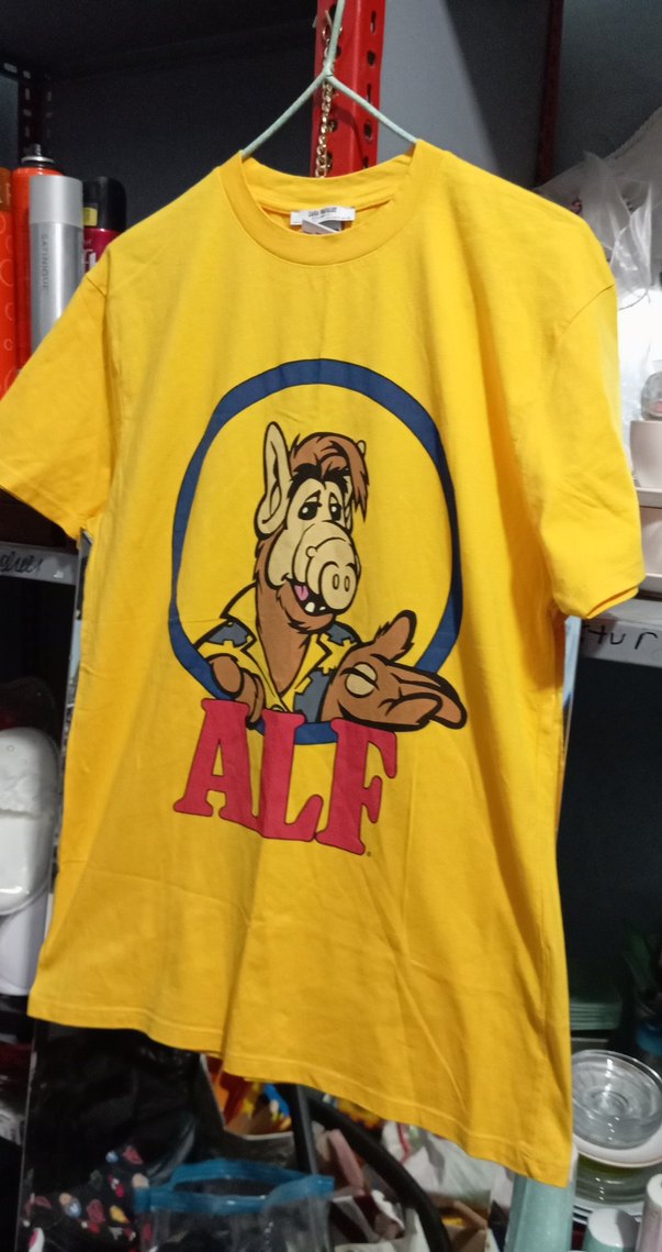 Sarı renkli, kısa kollu tişört, önünde renkli ALF baskısı bulunur. Rahat kesimi ve yuvarlak yakasıyla yumuşak ve sıcak kumaştan üretilmiştir.