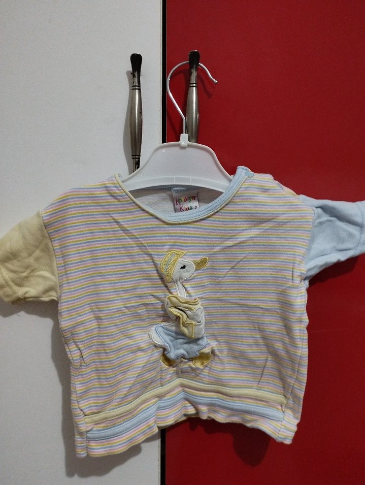 Pamuklu, örme dokulu, bol kesim, bisiklet yaka ve uzun kollu kız çocuk tişörtü. Pastel sarı tonlarda baskılı ördek figürü içerir.