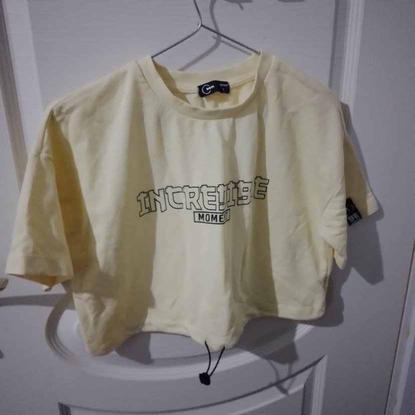 Açık sarı, yuvarlak yakalı, kısa kollu ve salaş kesim kız tişörtü. "INCREDIBLE MOMENT" baskısı ve ayarlanabilir bağcıklı etek ucu bulunur. Yumuşak ve sıcak kumaştan üretilmiştir.
