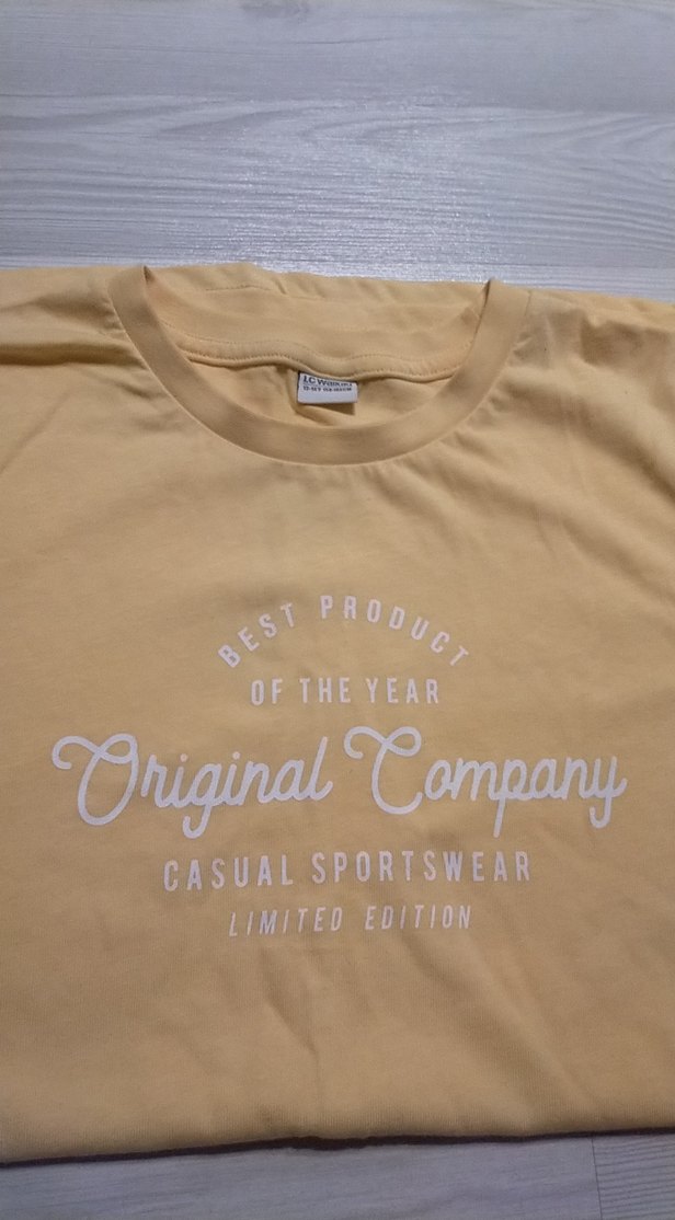 Sarı pamuklu, kısa kollu, yuvarlak yaka ve oversize kesimli tişört hiç giyilmedi