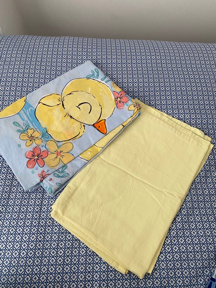 Pastel sarı pamuklu çocuk nevresim seti, ördek ve çiçek baskılıdır. Yastık kılıfı ve nevresimden oluşur, yumuşak ve rahat bir uyku tekstili sunar.