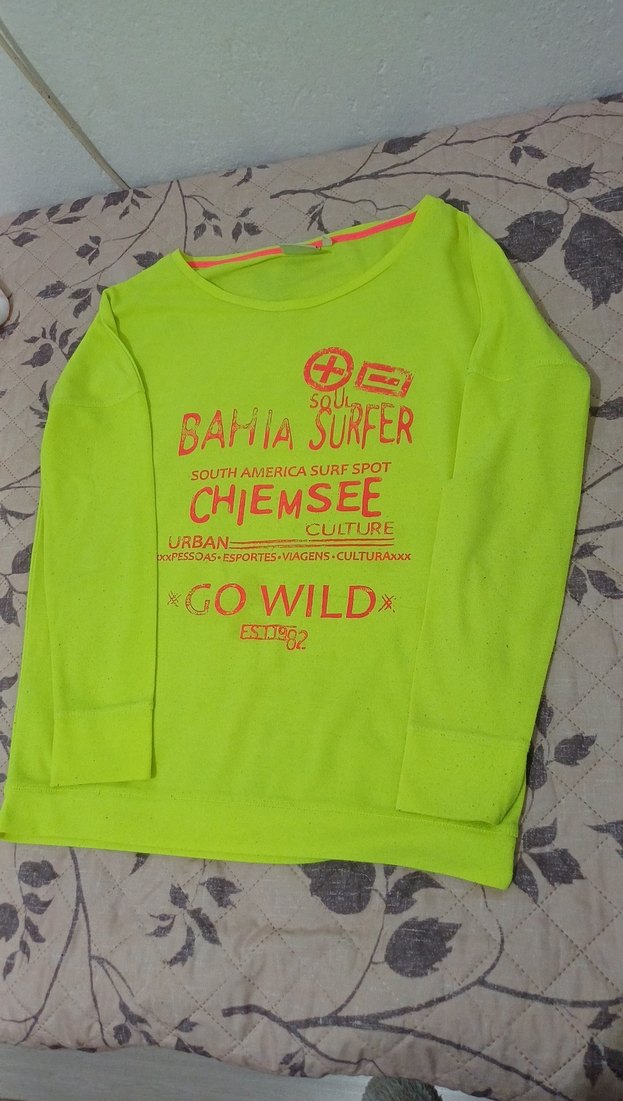 Sarı renkli, uzun kollu, bol kesim kız tişörtü. Üzerinde renkli baskılar ve şehir-sörf temalı yazılar bulunur. Yuvarlak yaka, rahat kullanım sağlar.