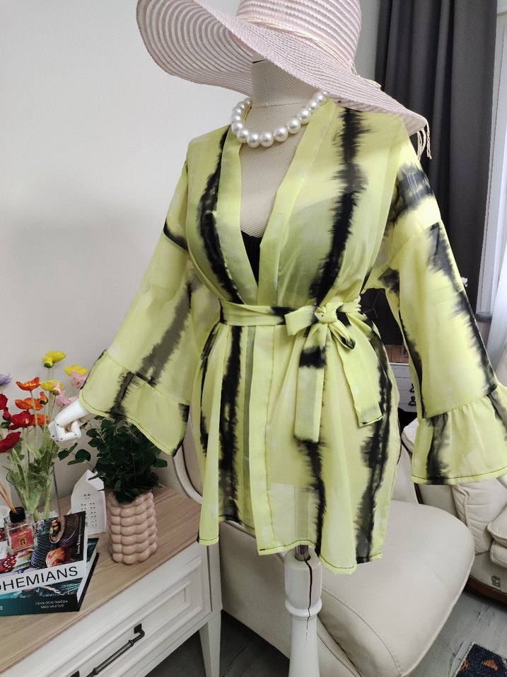 Sarı Batik Desenli Kemerli Mini Pareo