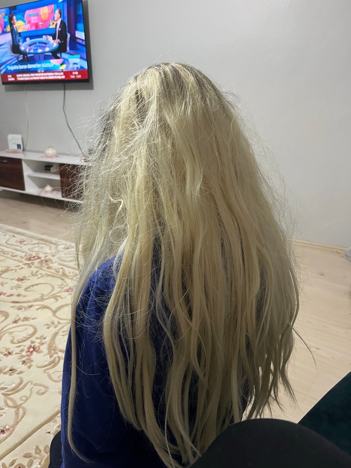 Sarı bayan paruk taranmadığı için kabarık duruyor bi kusuru yoktur