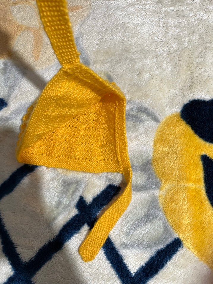Yumuşak, hafif kumaştan yapılmış açık sarı renkli bebek beresi 1 kez kullanıldı